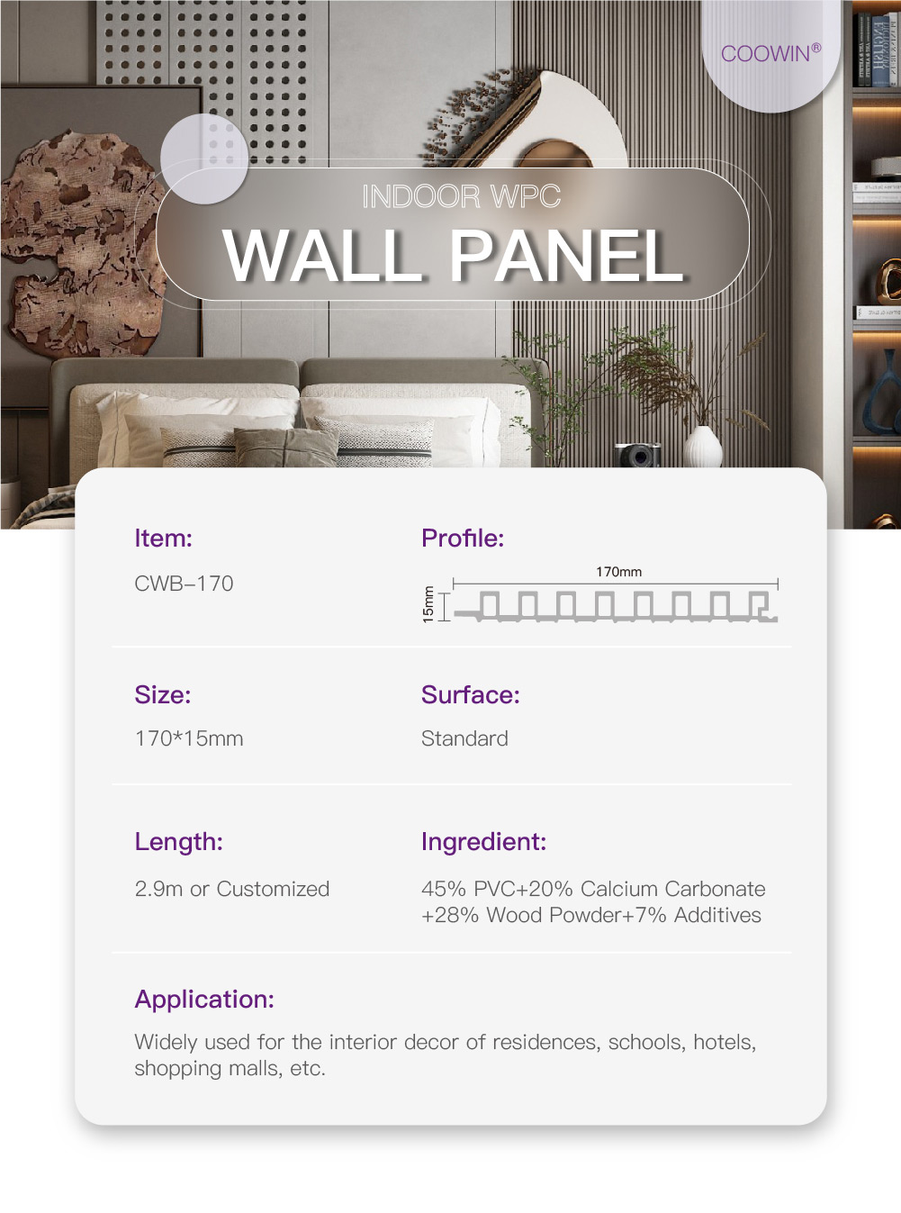 COOWIN® is an indoor WPC decoration material manufacturer that provides high-quality WPC wall panels, ceilings, timber tubes, etc. Our WPC wall panel product has a variety of designs and good price, suitable for bathroom, house decoration.