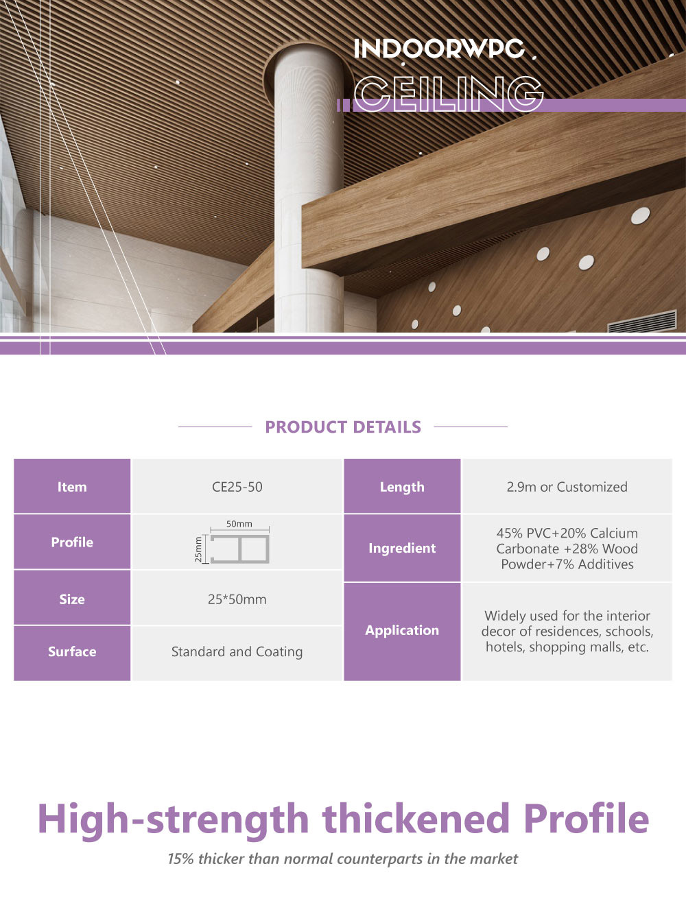 Home > Product > Ceiling > WPC Ceiling > WPC Simply Styled Interior Ceiling CE25-50